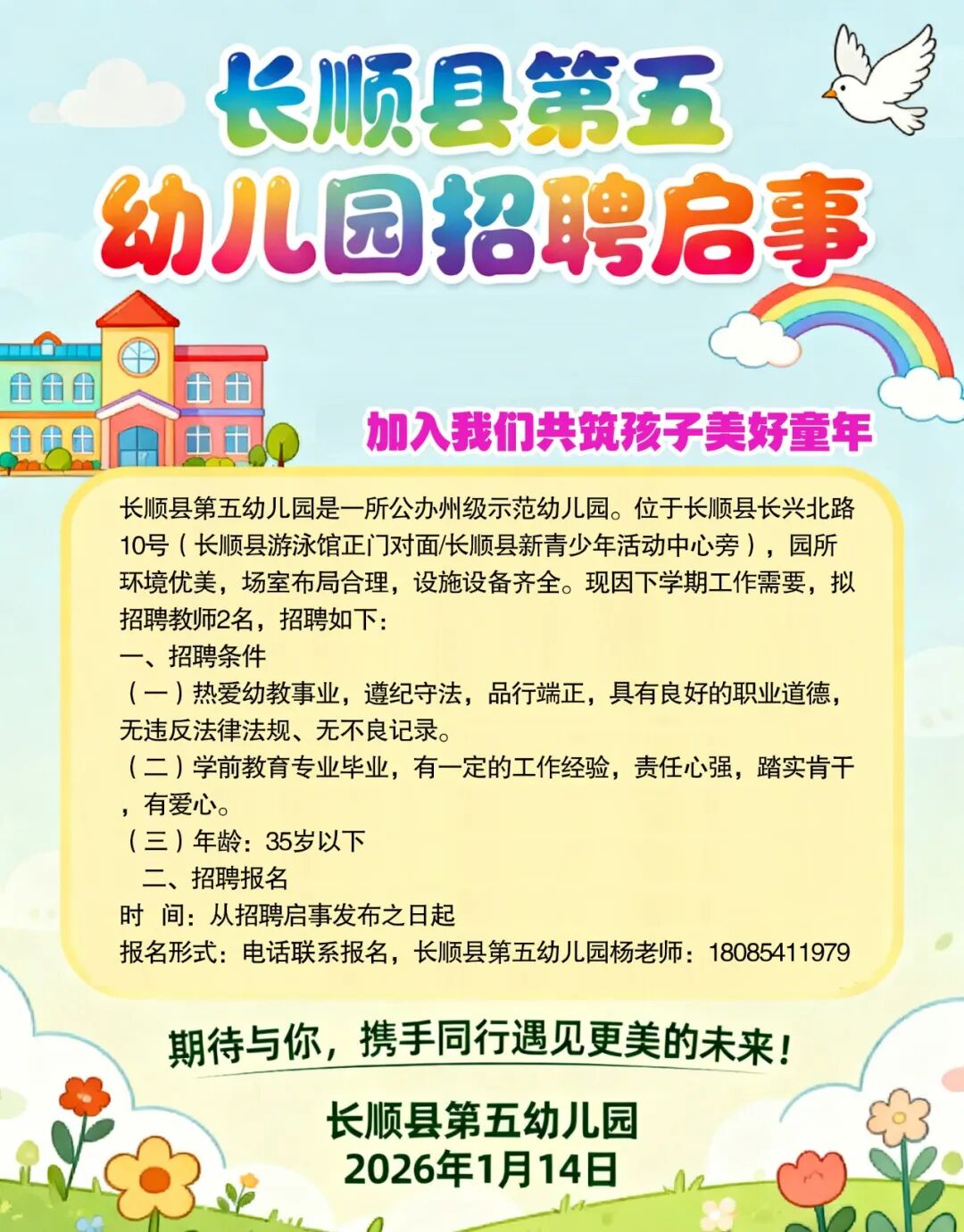 2026年长顺县第五幼儿园招聘启事